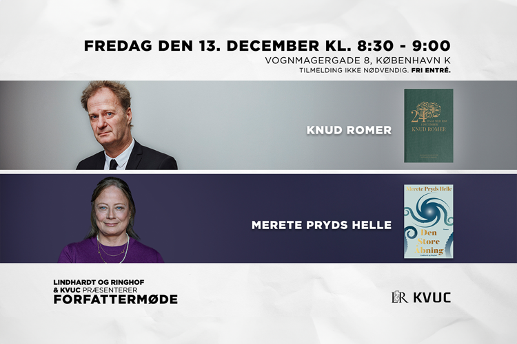 Fredag d. 13. december fra kl. 8.30-9.00 åbner KVUC dørene, når vi i samarbejde med Lindhardt og Ringhof holder Forfattermøde.